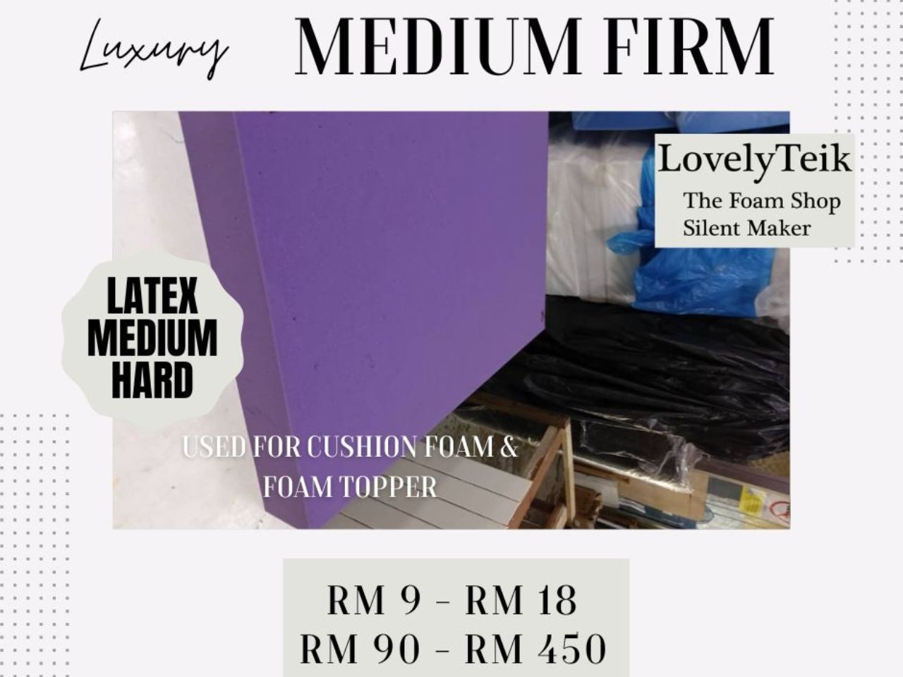 Have 2 type of firmness to choose – latex soft and latex hard.